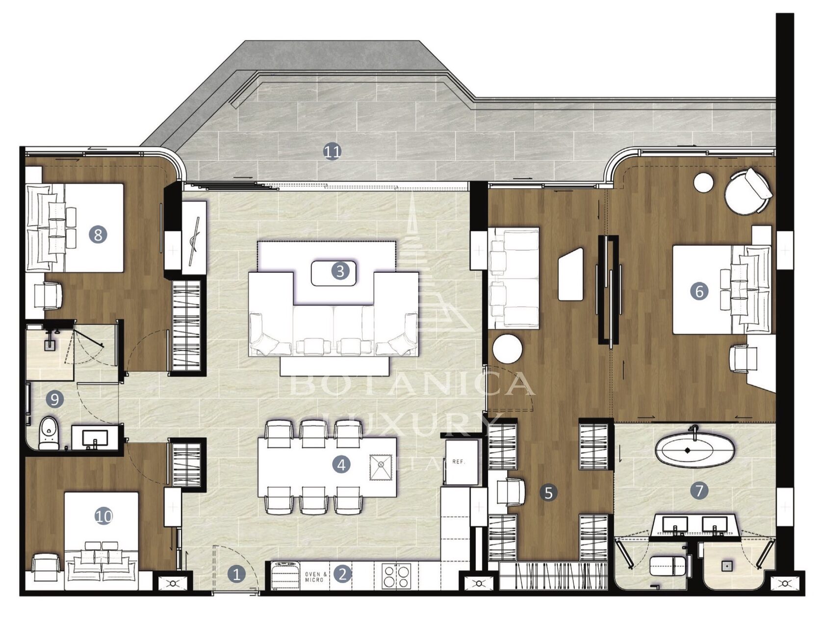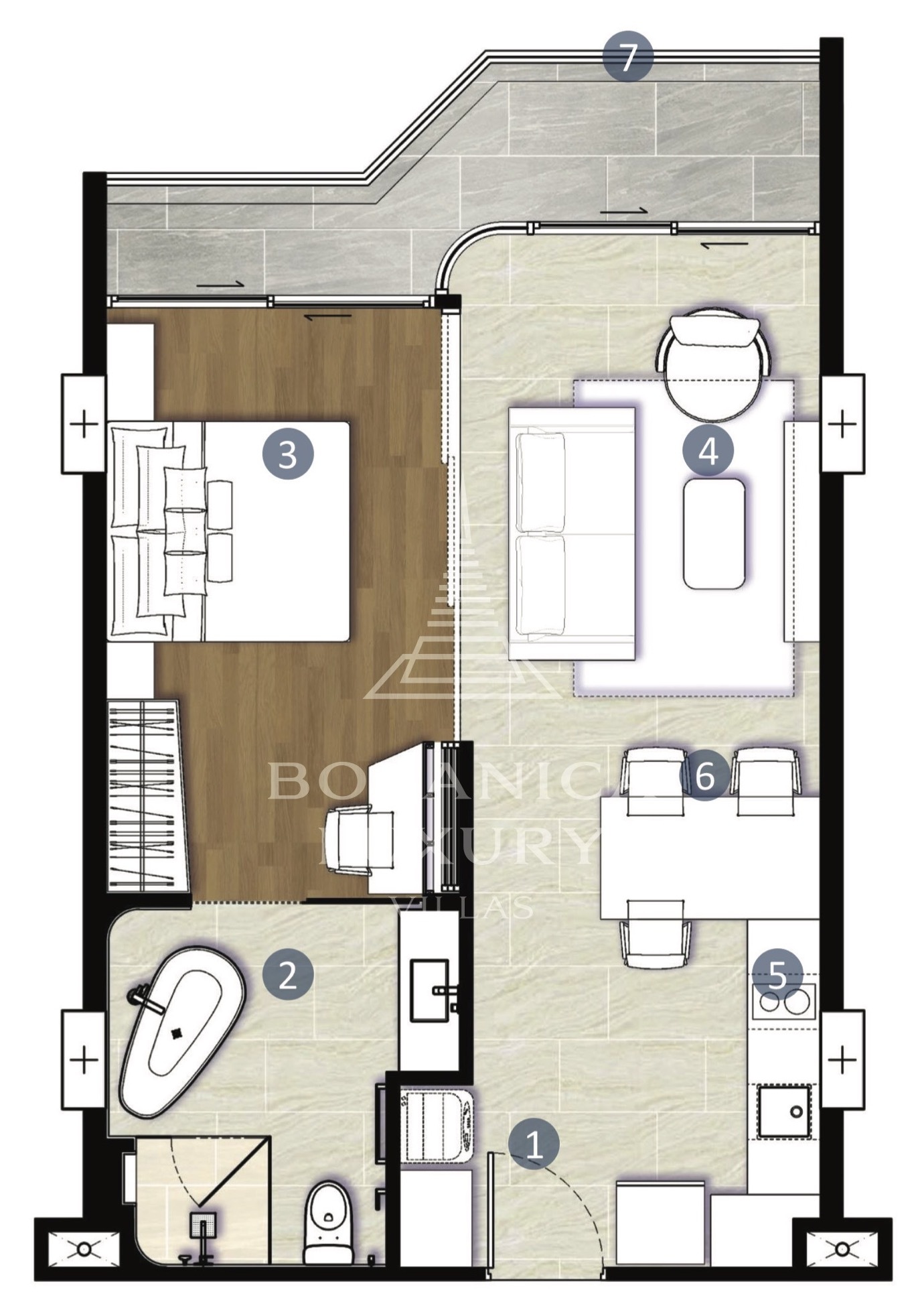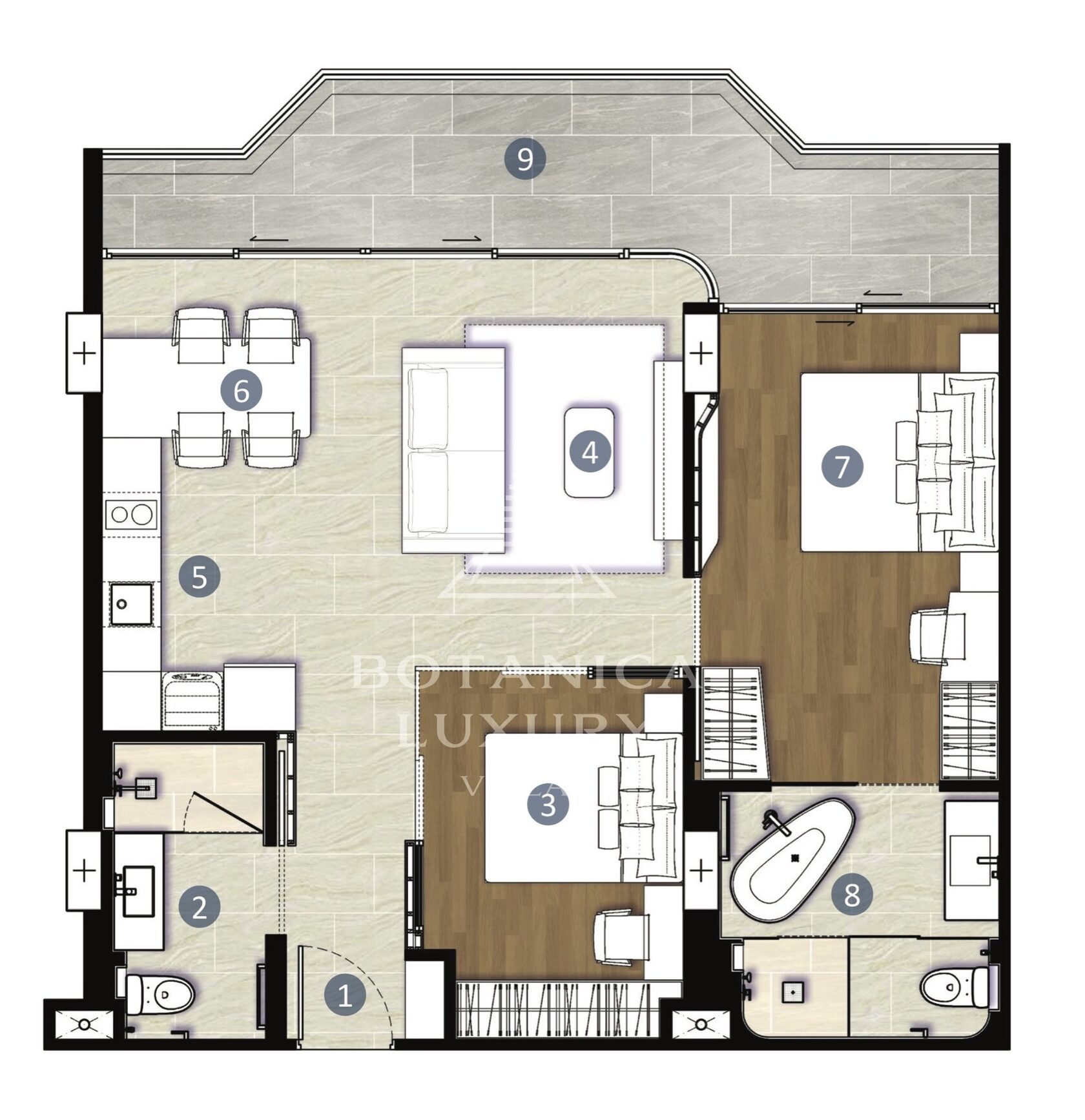 The luxury residential complex is nestled right next to the Botanica Grand Avenue villas. The project's concept revolves around the seamless integration of nature with modern, comfortable living. Multiple types of apartments are available, ranging from those with 1, 2, or 3 bedrooms to duplexes and penthouses