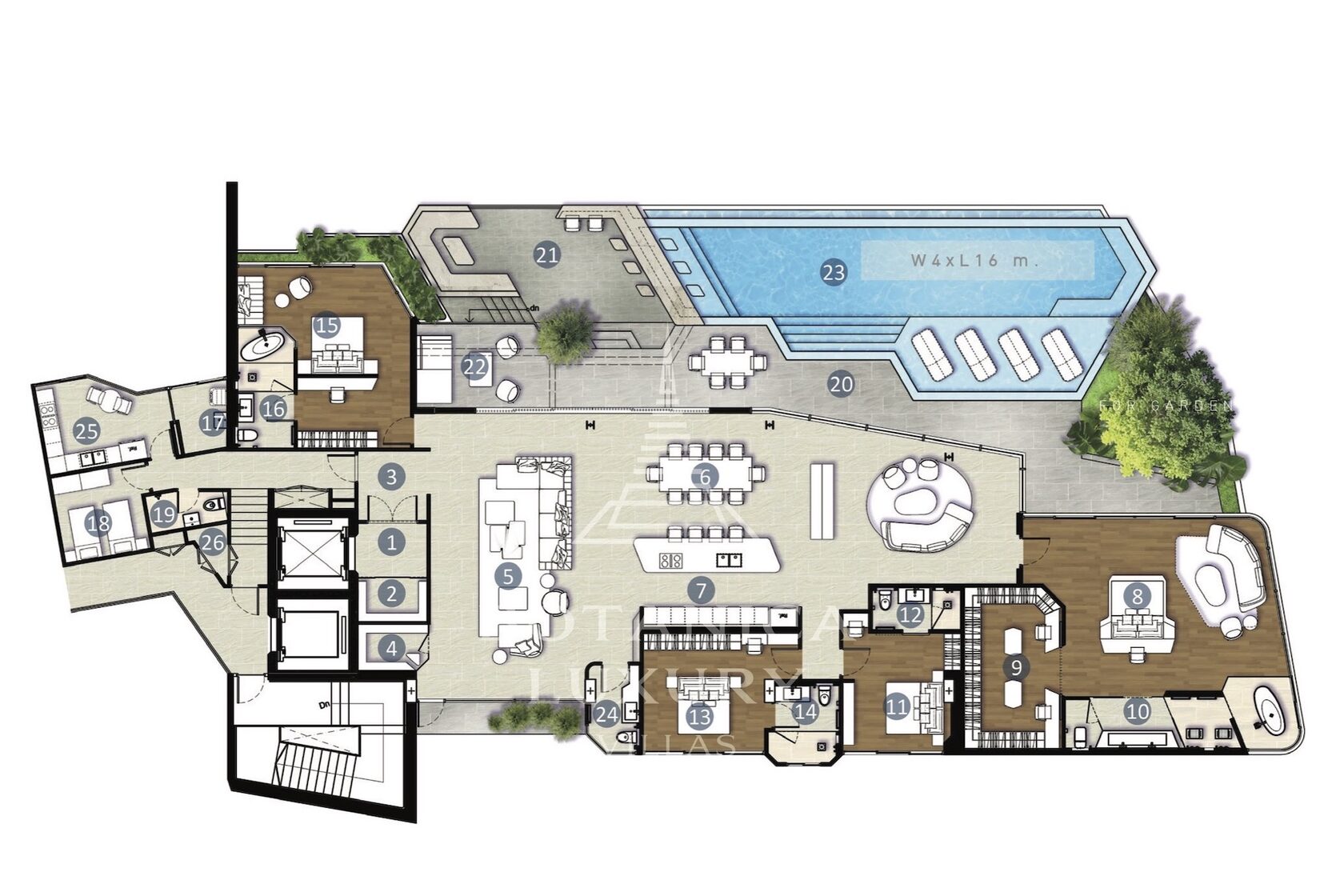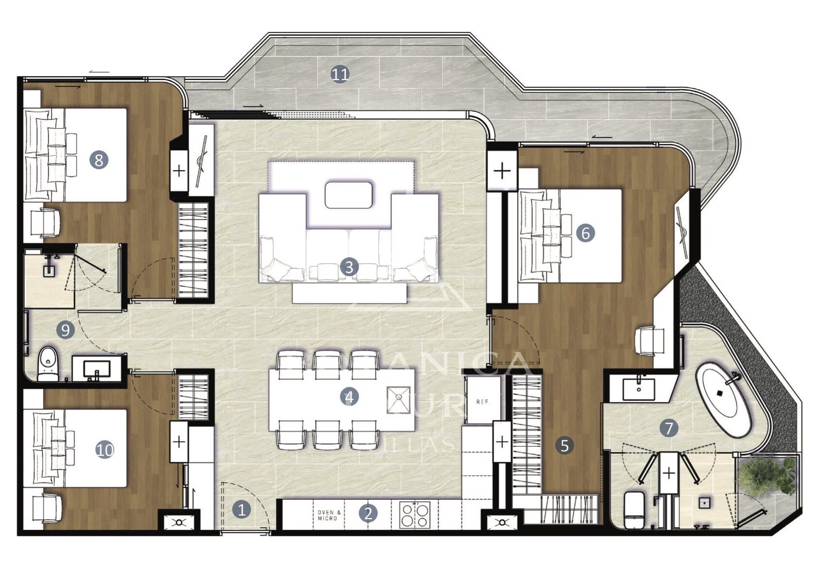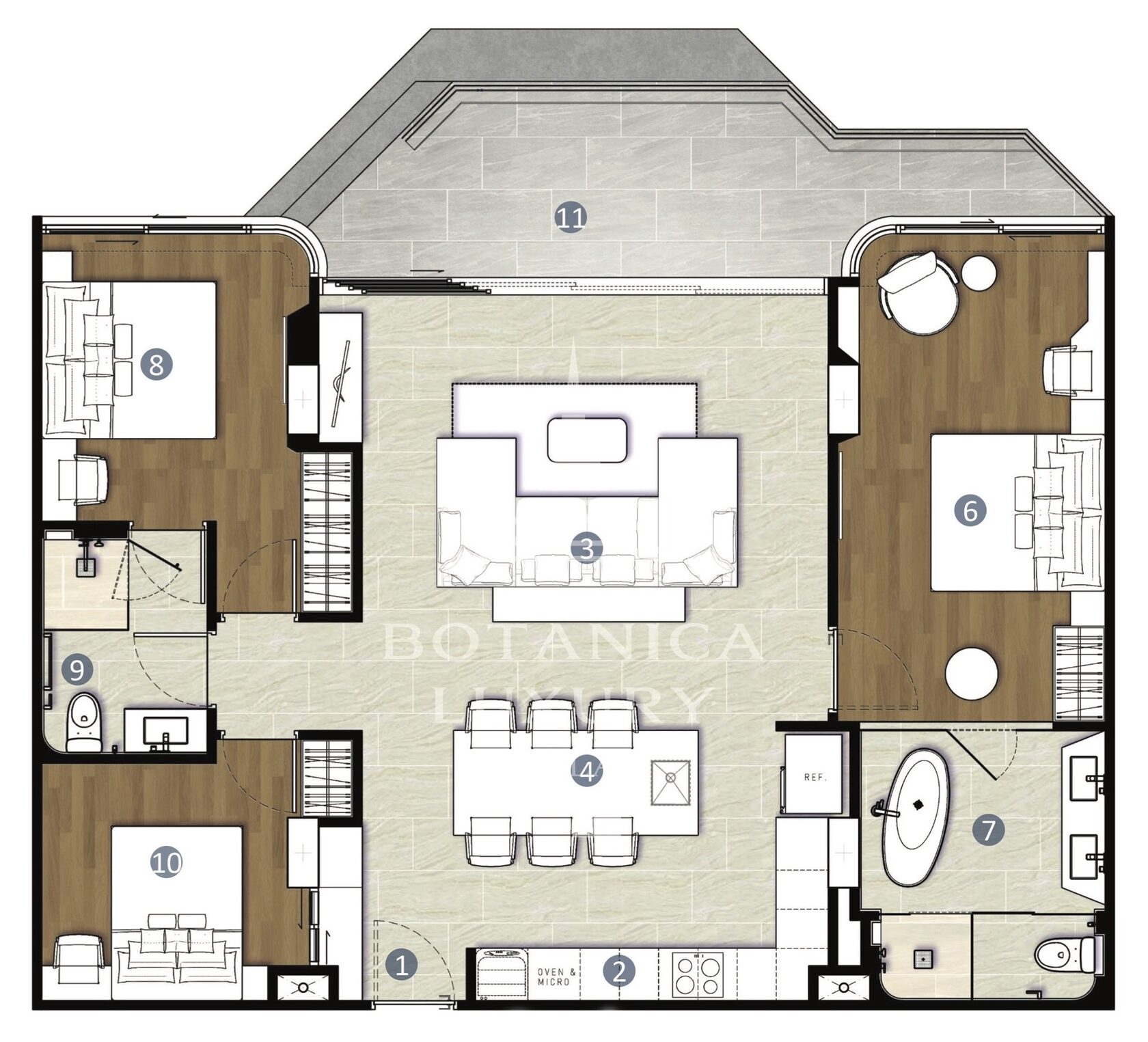 The luxury residential complex is nestled right next to the Botanica Grand Avenue villas. The project's concept revolves around the seamless integration of nature with modern, comfortable living. Multiple types of apartments are available, ranging from those with 1, 2, or 3 bedrooms to duplexes and penthouses